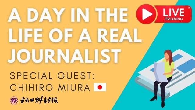 ▶️ 今週のスペシャルイベントでは日本秋田でローカル紙として圧倒的なシェアを誇る新聞社のジャーナリストをゲストに迎え、ジャーナリストとしての一日や新聞社について、また日本の新聞や新聞社をとりまく現状について写真をシェアしながら紹介します。Q&Aセクションも設けますので、聞きたいこと気になることがある方はぜひご参加ください!(日本語英語どちらでもOKです)